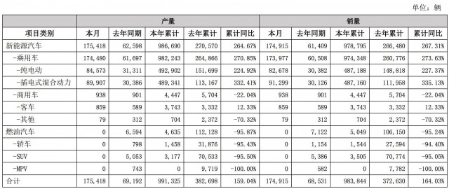 今年1-8月,比亚迪累计生产了986690辆新能源汽车,同比增长264。67%;累计销量为978795辆,同比增长267。31%。