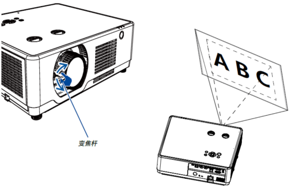 面对这种复杂的应用场景,拥有变焦比的投影机就方便多了。投影机可在位置不变的情况下投影出不同大小的画面,无需挪动投影位置,只需要转动变焦环,再结合镜头位移功能,就能投射出尺寸合适的画面。