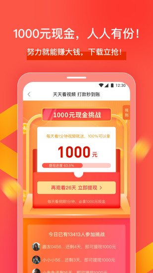 趣头条小视频版app下载送1000元现金的到你的账户里头,当然提现什么的是有条件和诸多限制的!趣头条小视频版app看的多,赚的多。趣头条小视频版app坚持看视频,每天看1分钟视频,坚持就能赚取1000元现金,全国最低门槛提现,0.3元都能提哇!