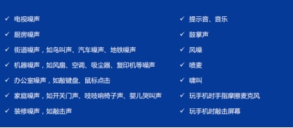 针对元宇宙或者多人音视频交流环境中的不同噪音,通过声网AI降噪能力,可以对上百种不同的噪音做精确的消除,由于在端上以SDK模式进行,因此不需要有很高的额外成本。支持的噪音消除包括以下噪音: