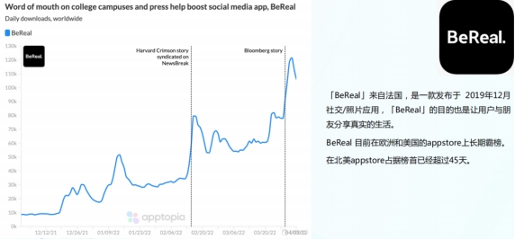 「BeReal」号称是反INS的应用,它的应用非常真实,抓住了我们认为在社交当下产品中间的空白地带:剔除滤镜、点赞等部分功能,限制对照片和视频的编辑,反对完美主义,追求一个真实未加过滤的朋友之间的交流。